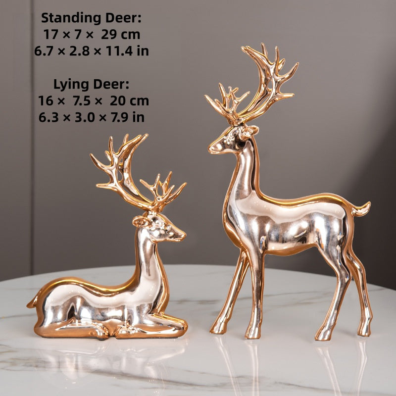 Deer statues in standing and reclining positions