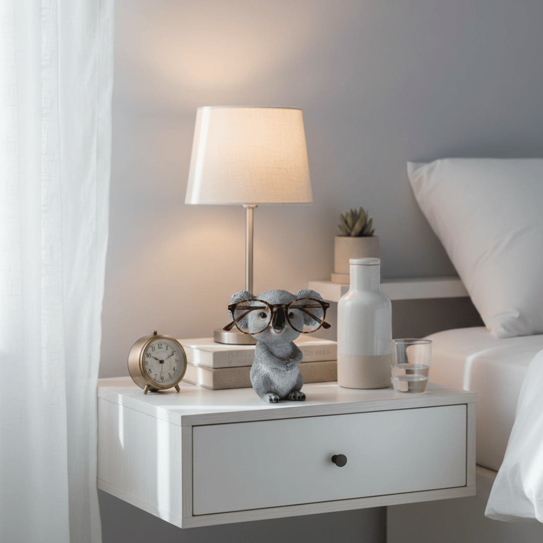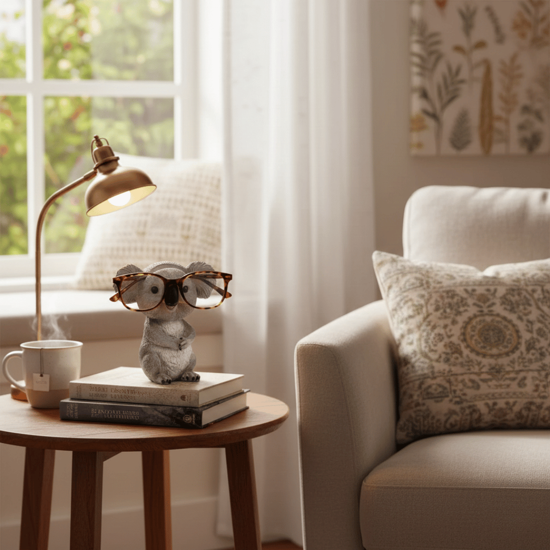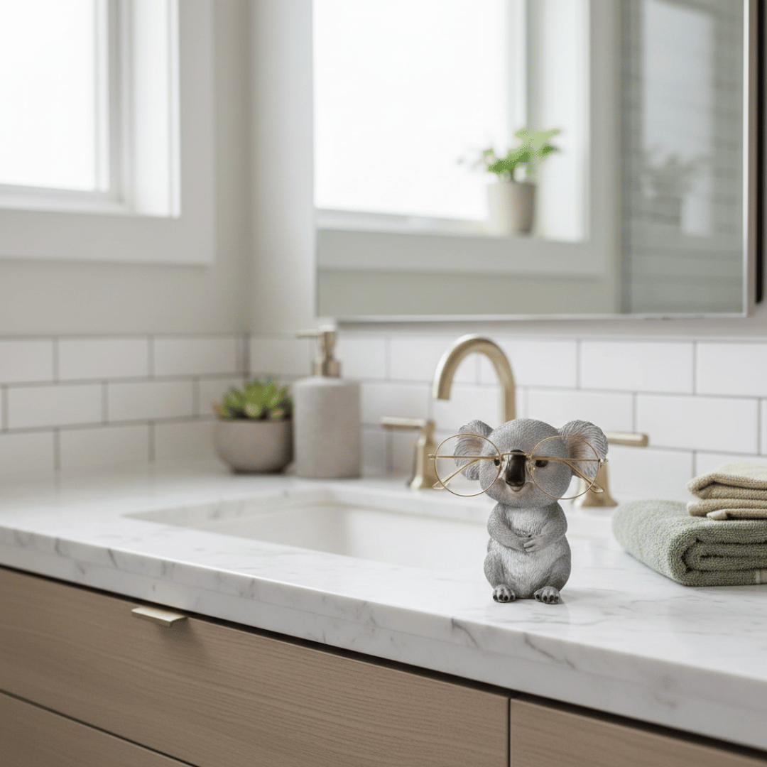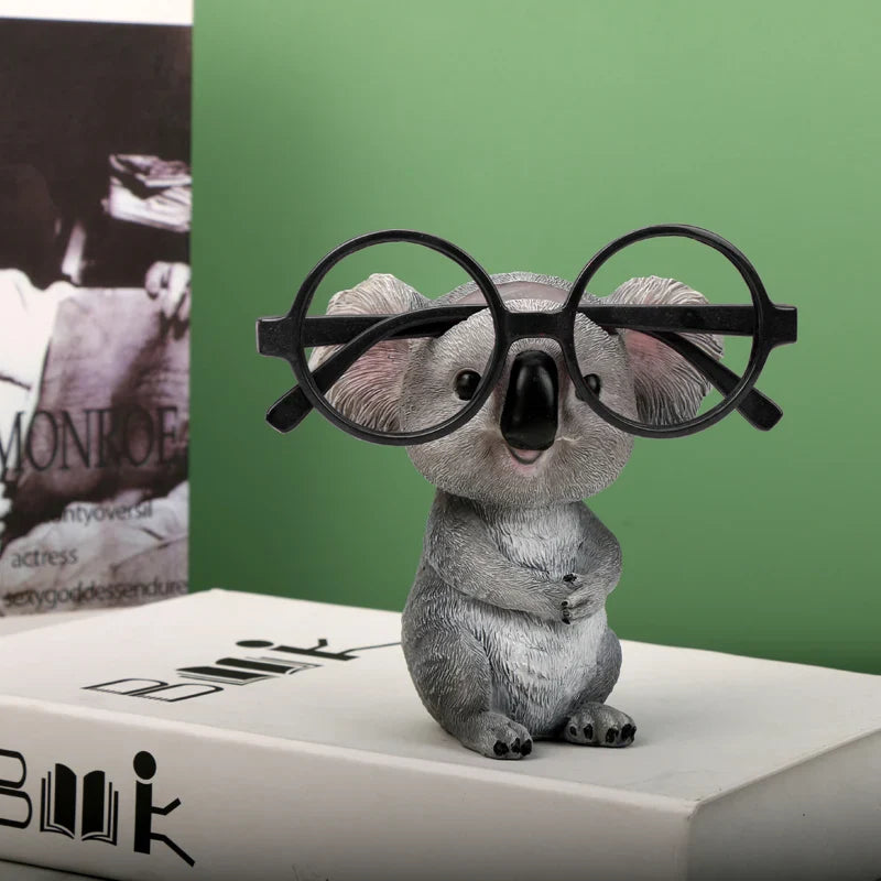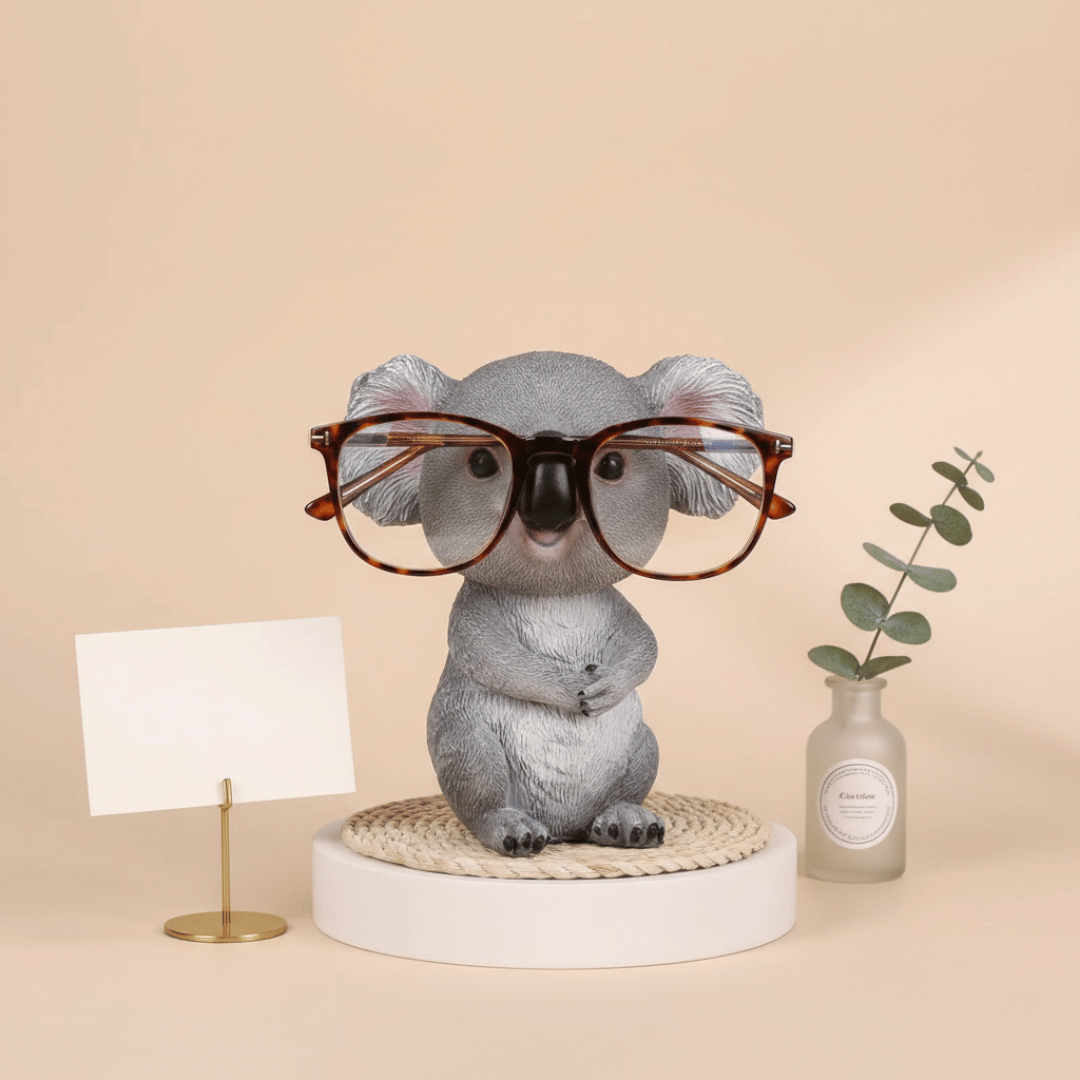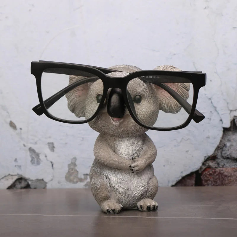 A detailed koala figure holds eyeglasses on its extended nose bridge. Hand-painted details capture individual fur texture and natural coloring variations. The compact scale fits nightstands, desks, or bathroom counters without consuming space. Functional design eliminates searching for misplaced glasses throughout the day.