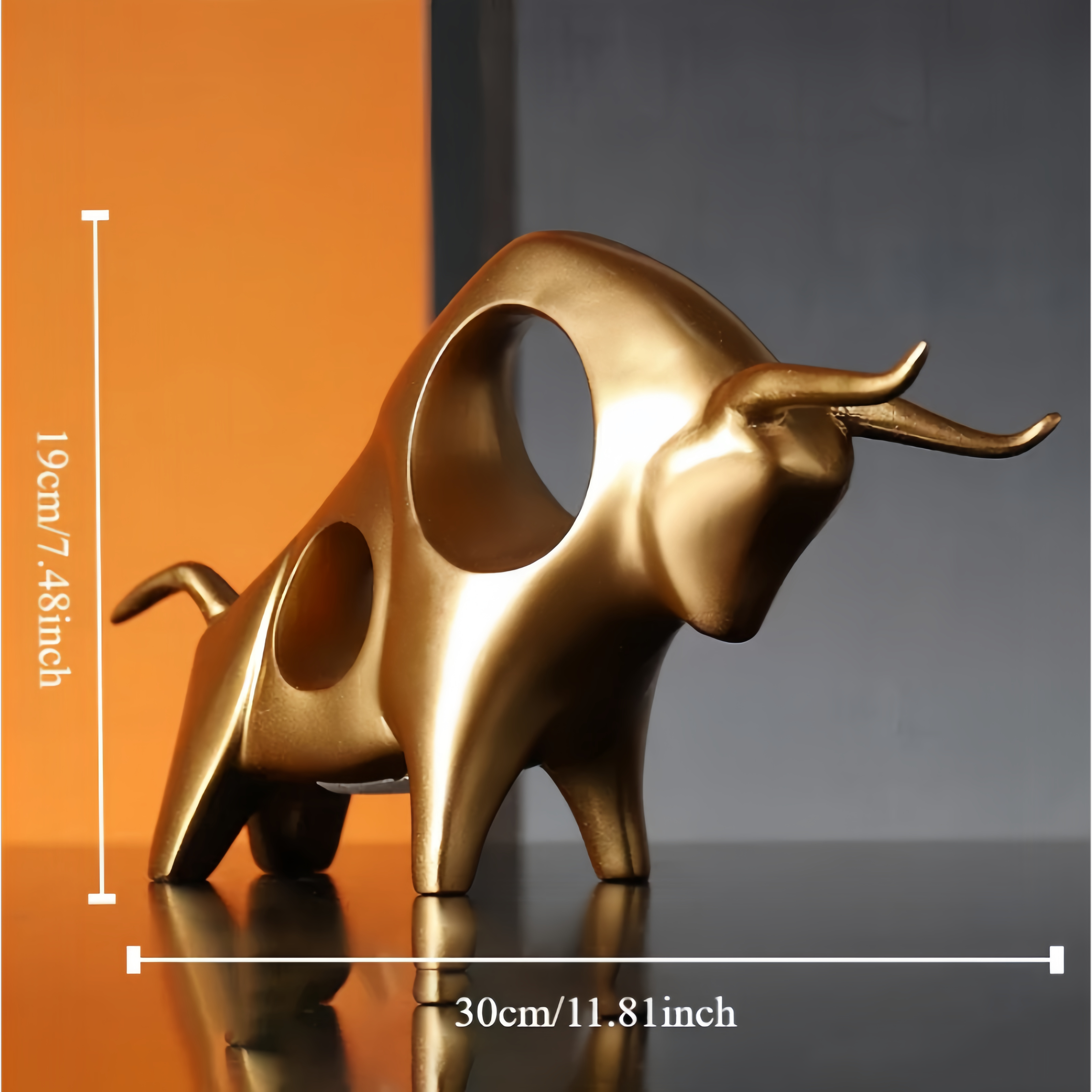 Inspired by the power of the bull, this sculptural piece fuses modern minimalism with striking detail. With its smooth curves, metallic accents, and openwork body, it adds depth, energy, and class to any room.