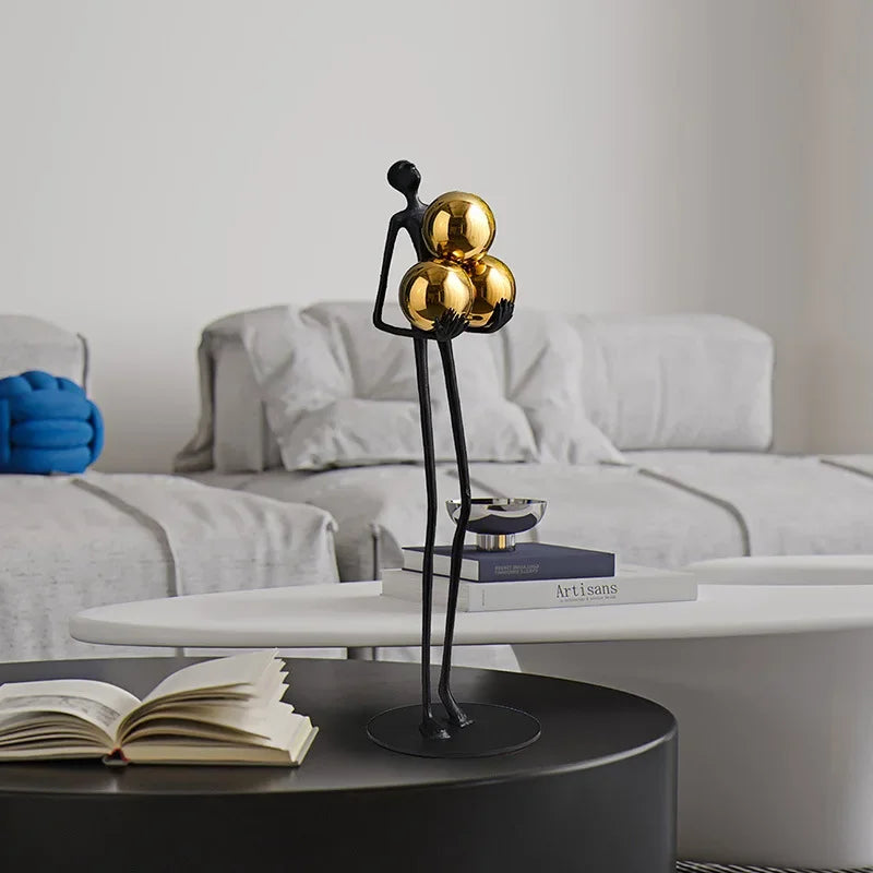 Crafted with a minimalist black figure holding three radiant golden spheres, this piece fuses modern art with timeless symbolism. Whether placed in your living room, hallway, or office, it captures attention and inspires conversation.