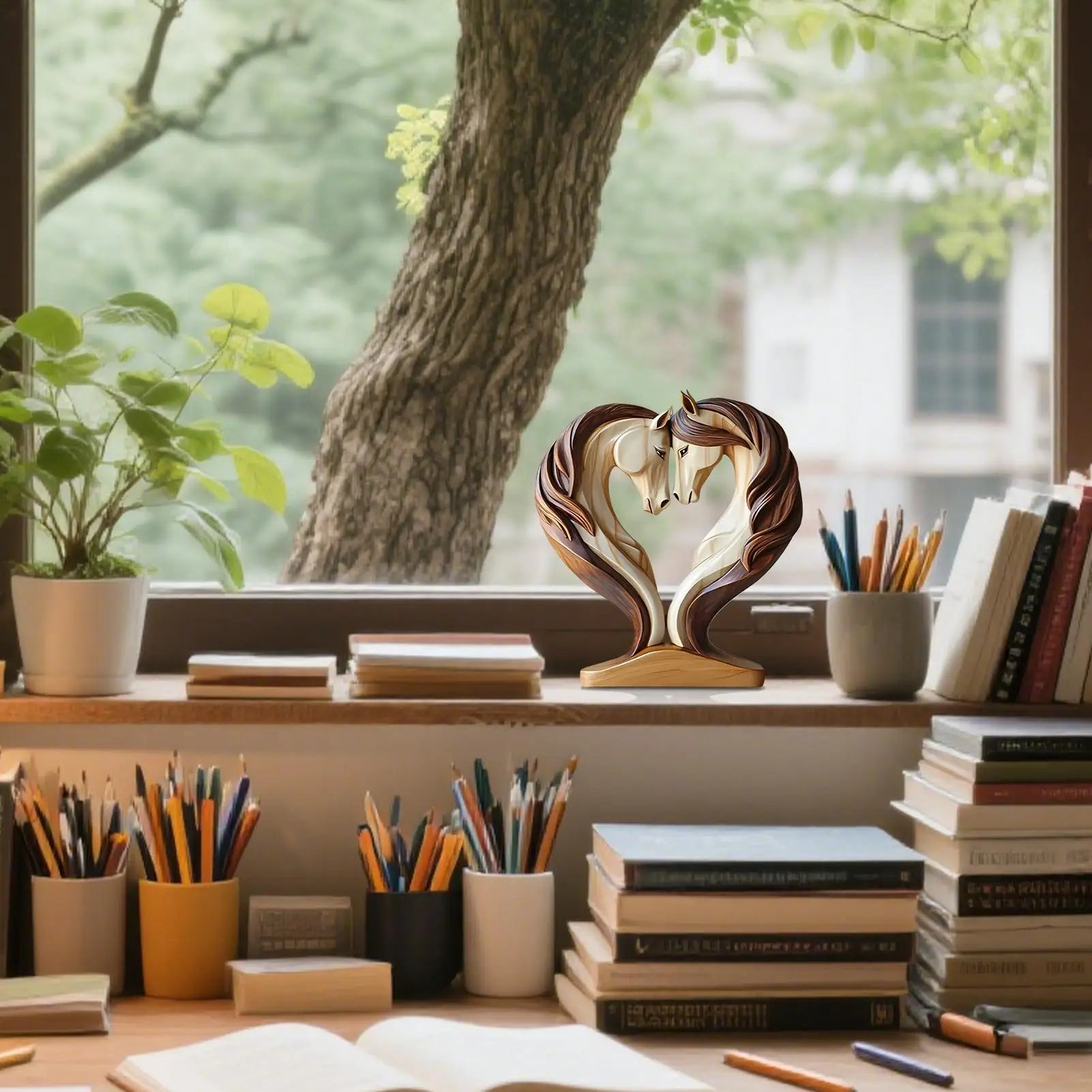 The Embrace - Two Horse Silhouette in Natural Wood