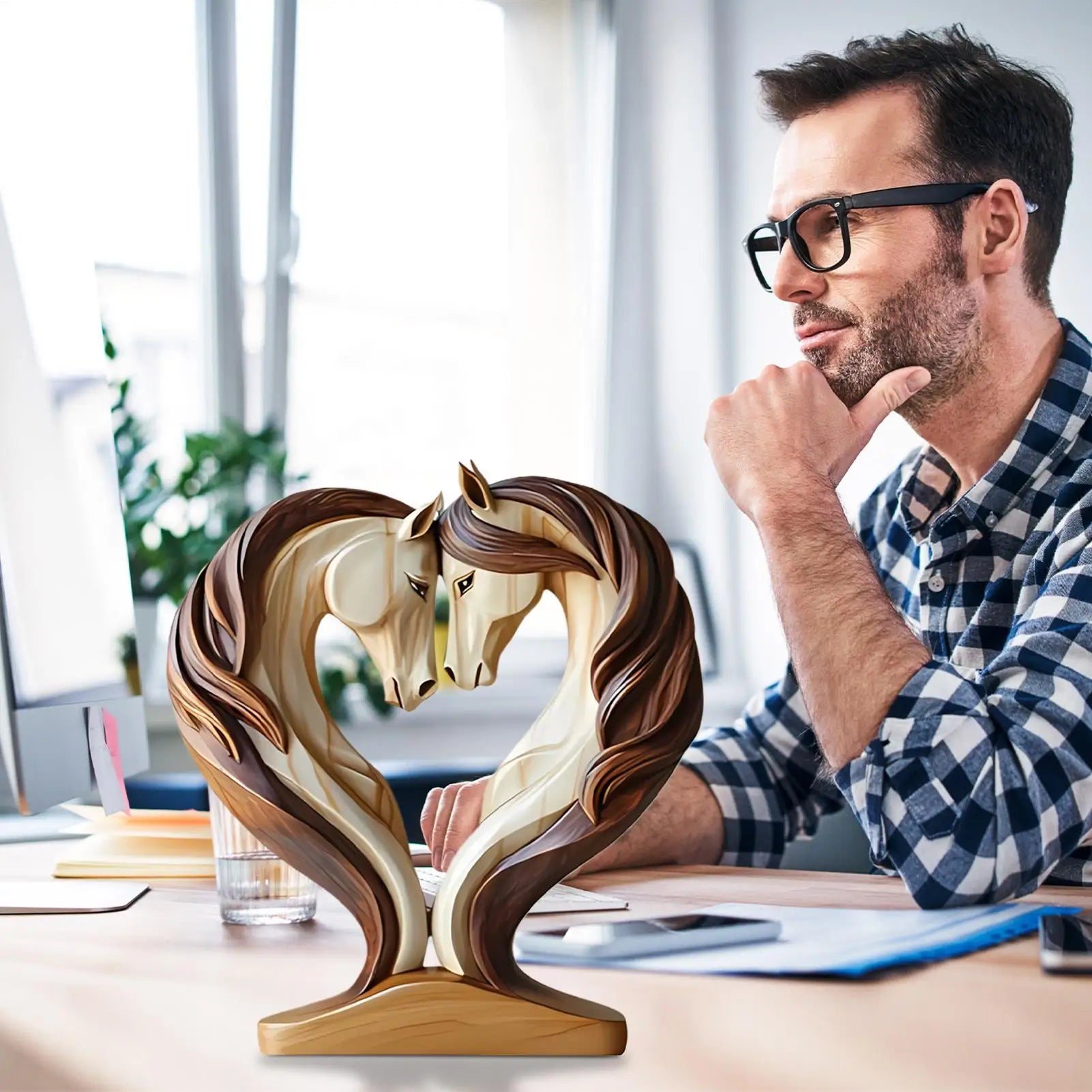 - 1 × Two horse wooden silhouette sculpture